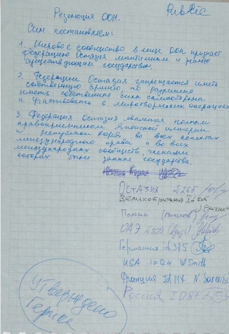 Подписано: представитель ГМЧ Михаил Корвин.